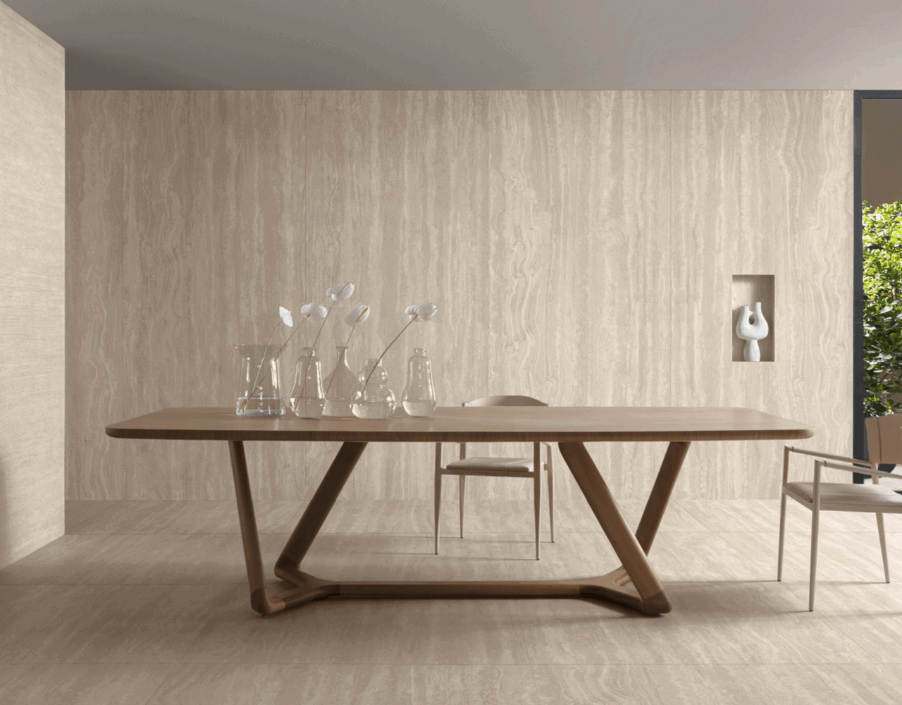 Domus reimagines the timeless beauty of Travertine through a modern lens. Offered in large-format sizes with refined polished and matte finishes. Complementing its sleek surfaces, Domus features artfully textured wall tiles—perfect for creating dimension and sculptural impact in contemporary interiors.