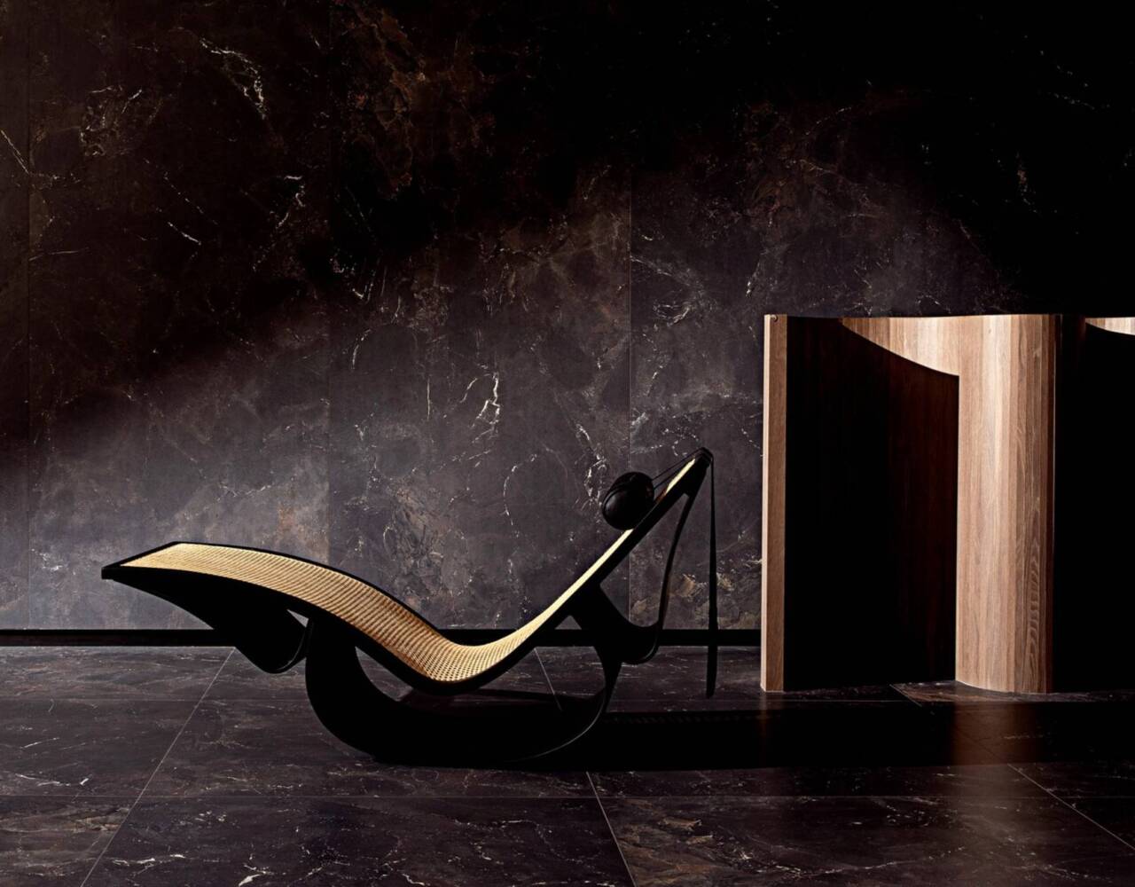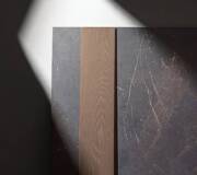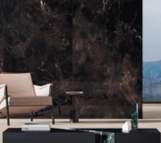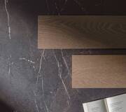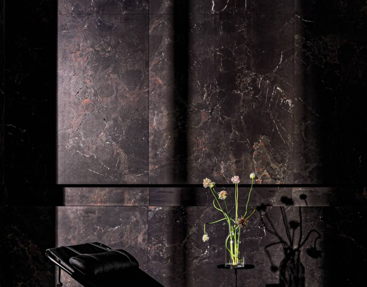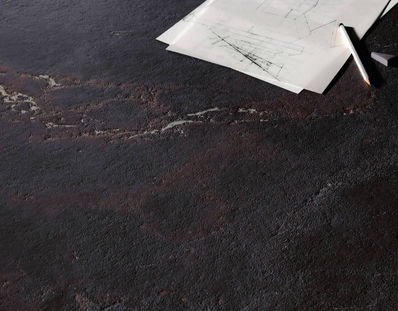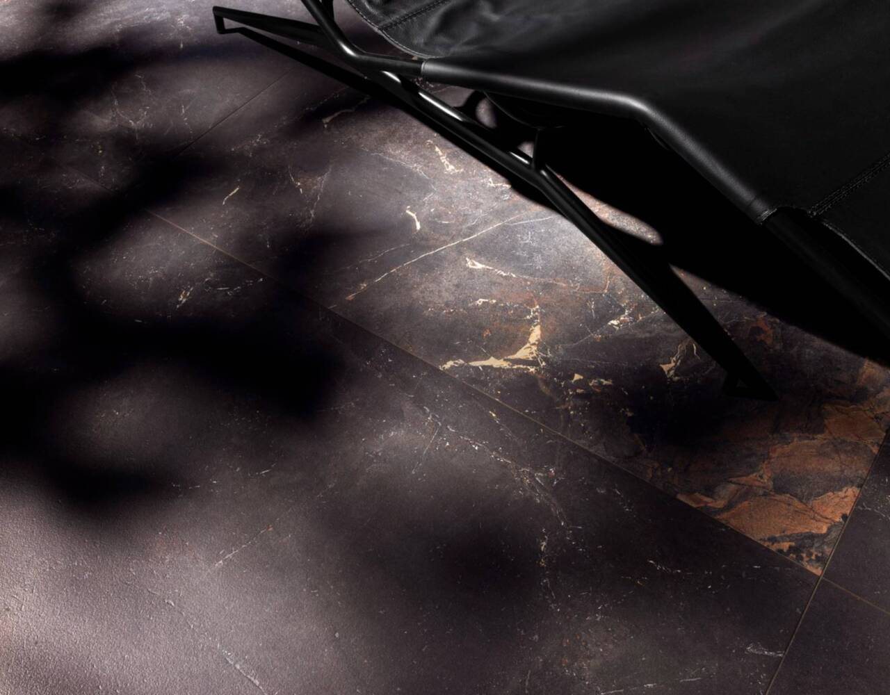 A refined interplay of stone strength and leather-like texture. Sauvage features deep black-brown tones, sculptural reliefs, and rich surface details. Available in large format sizes in both matte and polished finishes.
