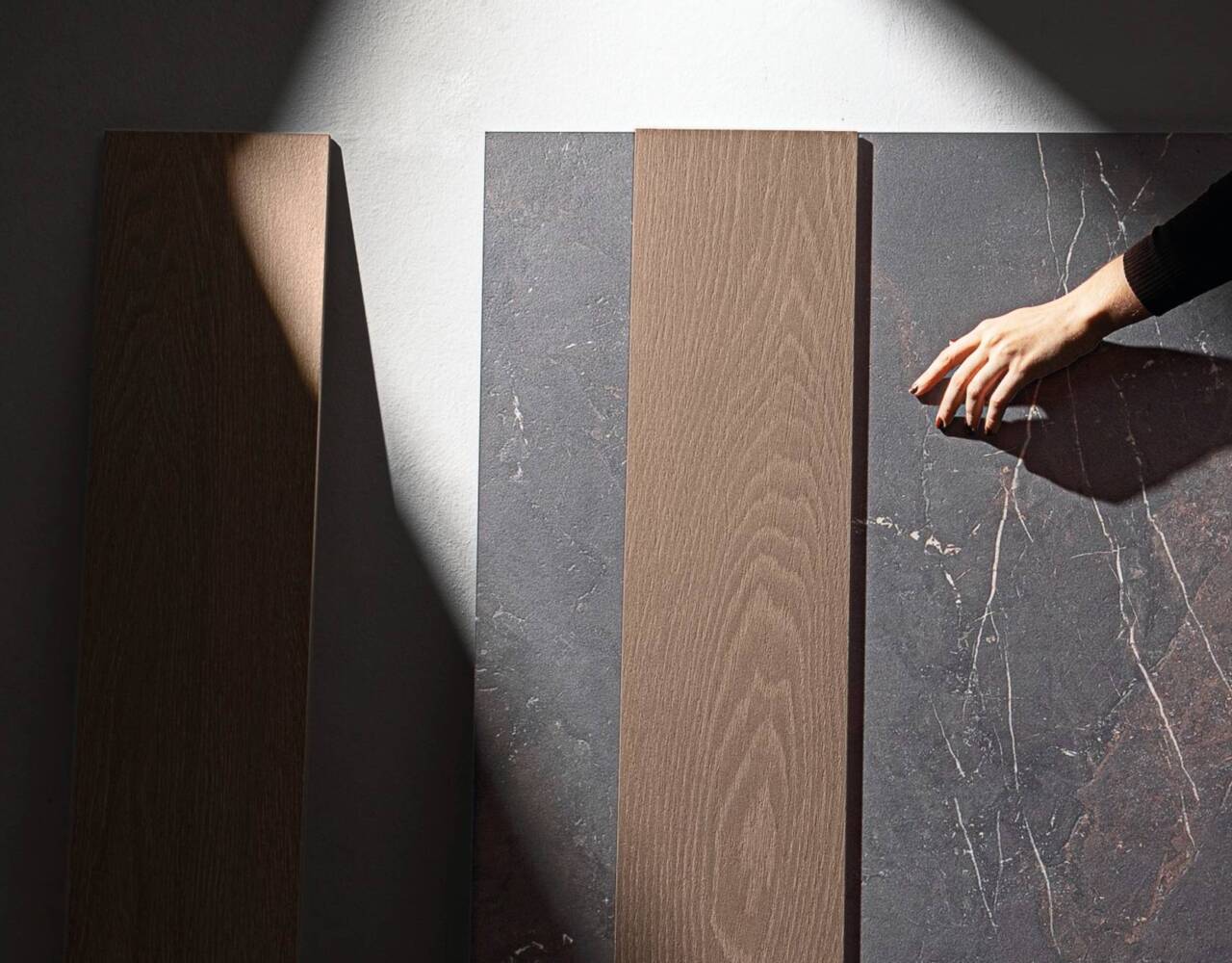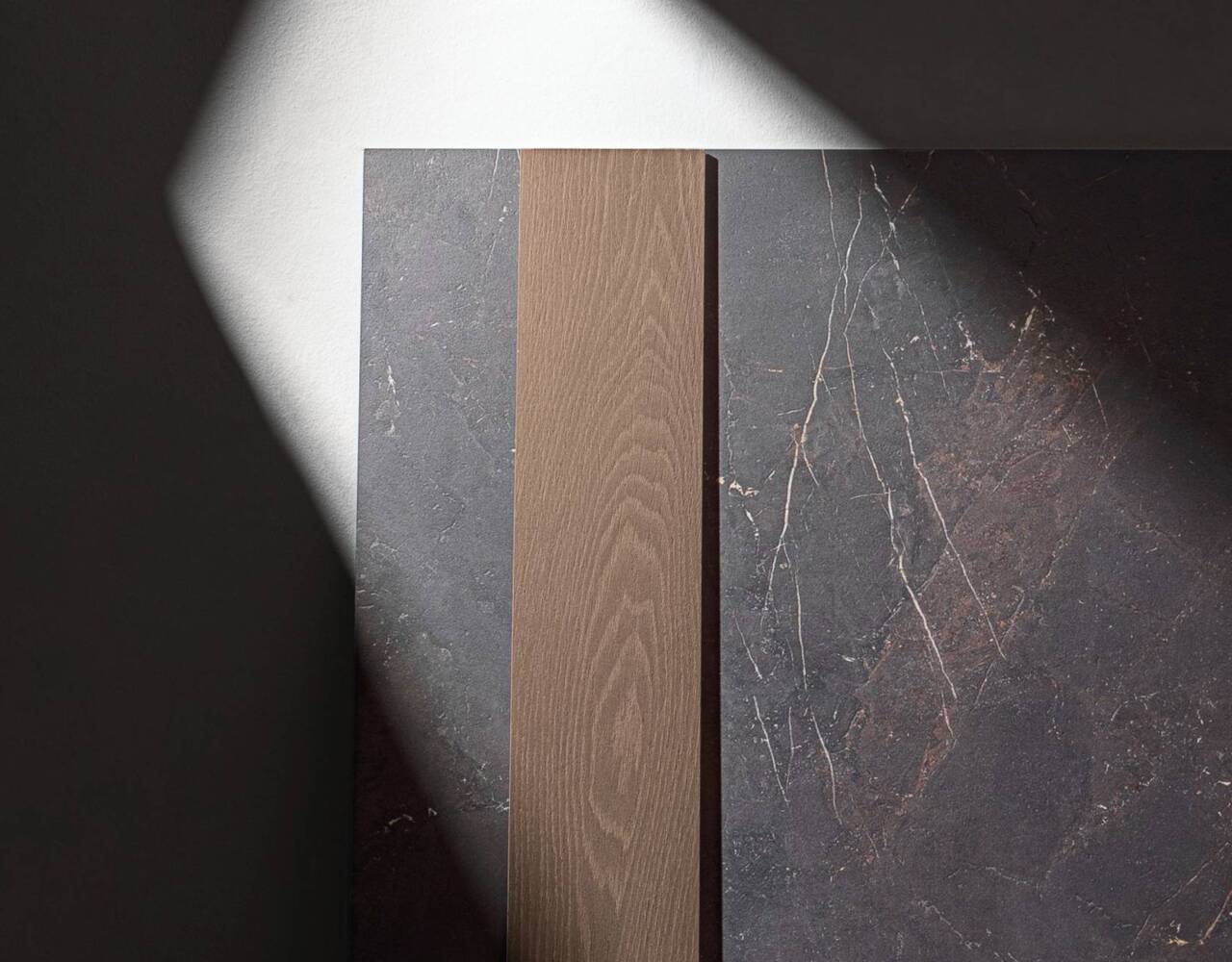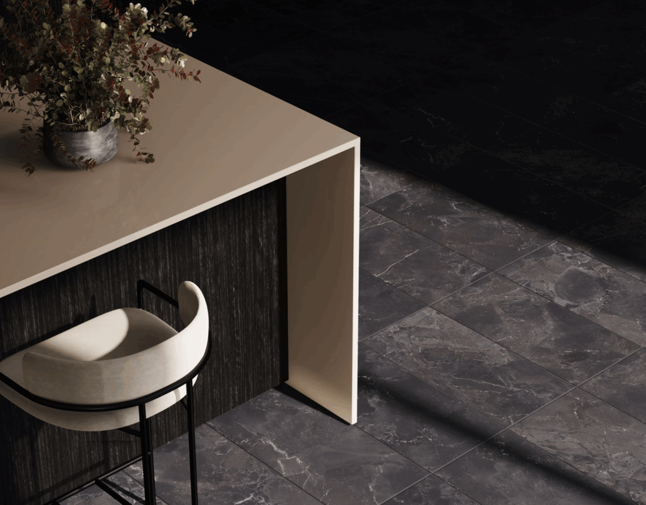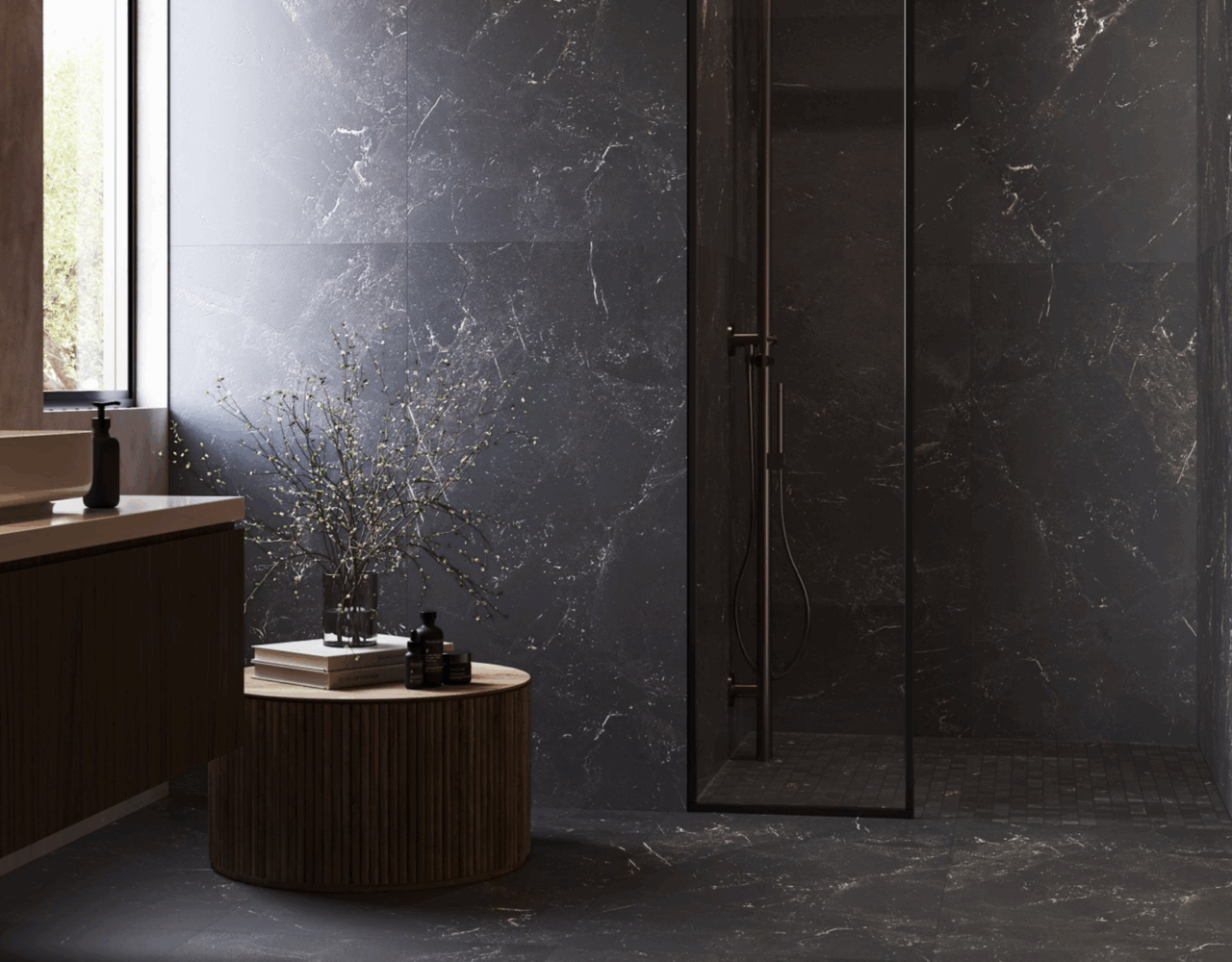 A refined interplay of stone strength and leather-like texture. Sauvage features deep black-brown tones, sculptural reliefs, and rich surface details. Available in large format sizes in both matte and polished finishes.