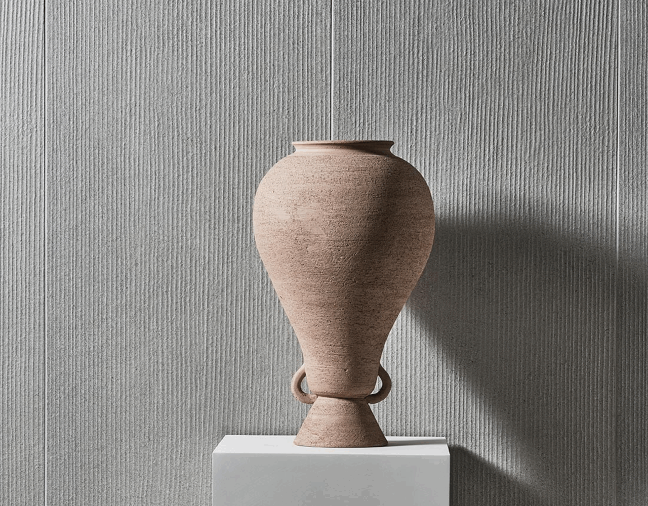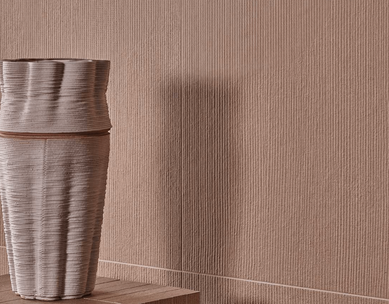 Silhouette is thoughtfully designed around two distinct textures: one features a striking linear, three-dimensional surface, while the other offers a smooth, refined texture. Playing with the contrast between light and shadow, these surfaces transform throughout the day, adding depth and intrigue to any space